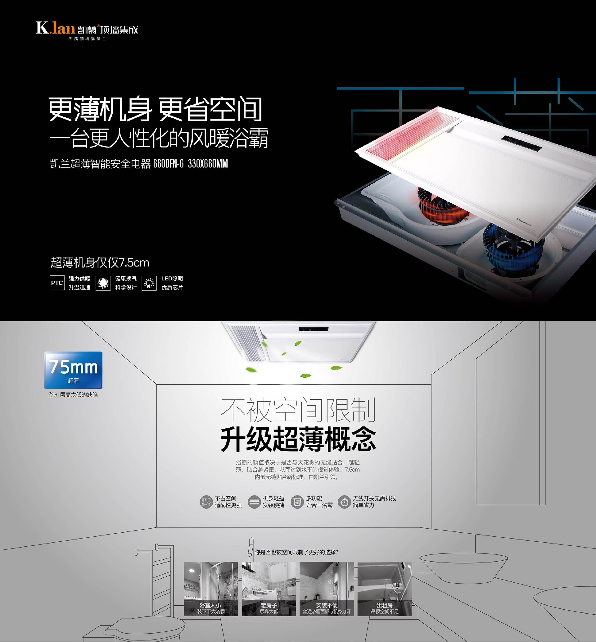 凱蘭頂墻集成|超薄浴霸雙電機(jī)取暖